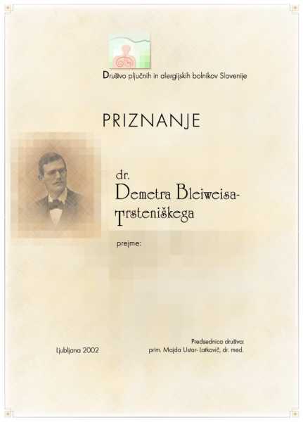 Dosedanji dobitniki priznaja dr. Demetra Bleiweisa-Trsteniškega so: